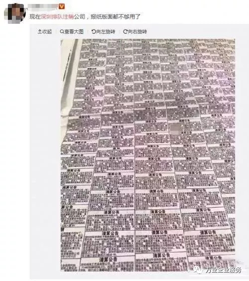 事實上,這個有點夸張了,被普遍轉發的上述圖片應為深圳商報廣告版面,刊登各類公告、遺失聲明、啟示等。版面上的確以清算公告居多,但一直如此,并非新情況。