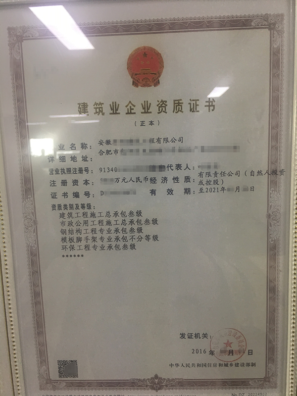 級別:建筑工程三級+鋼結構三級+市政三級+環保三級+模板腳手架不分等級